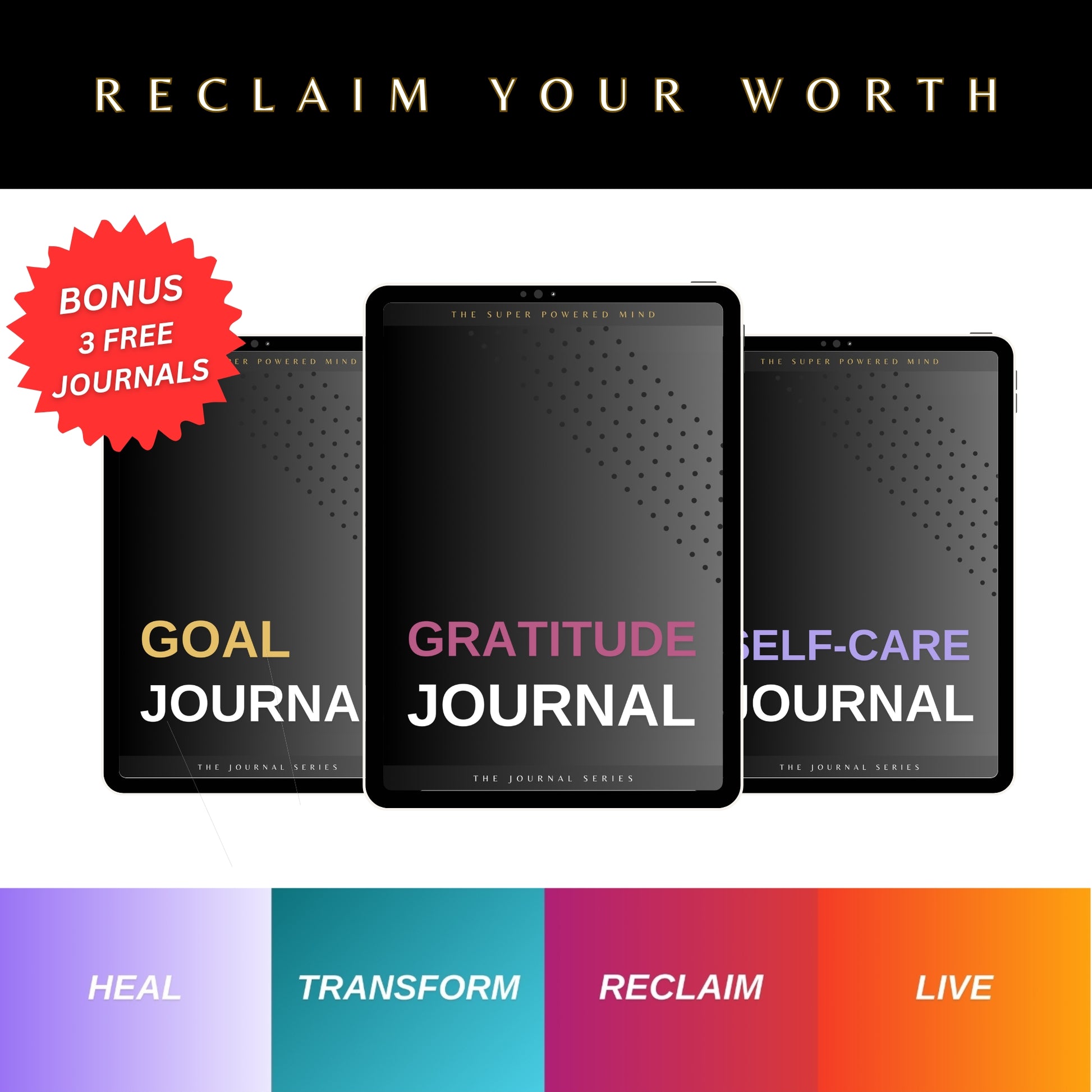 PLUS - 3 BONUS Journals - Goal Journal, Gratitude Journal, Self-Love Journal